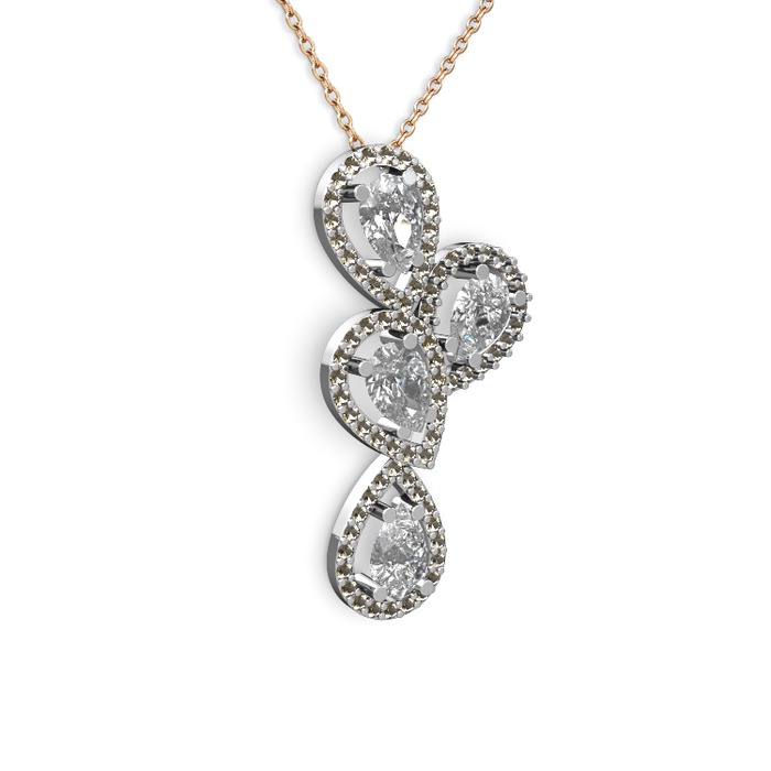 Swarovski ve dumanlı kuvars 925 ayar gümüş kolye (40 cm rose altın rolo zincir)