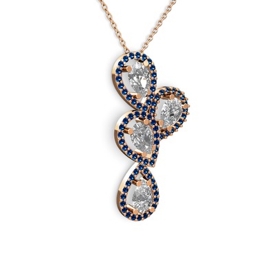 Swarovski ve lab safir 14 ayar rose altın kolye (40 cm rose altın rolo zincir)