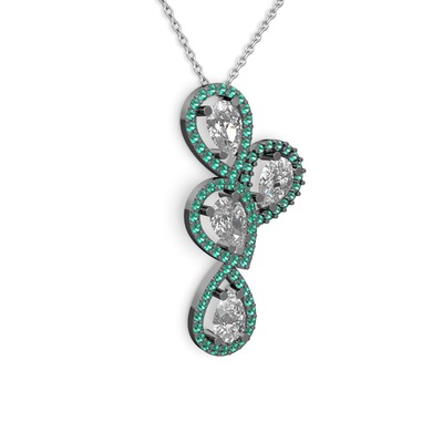 Swarovski ve yeşil kuvars 925 ayar siyah rodyum kaplama gümüş kolye (40 cm beyaz altın rolo zincir)