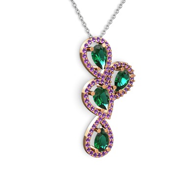 Yeşil kuvars ve ametist 8 ayar rose altın kolye (40 cm beyaz altın rolo zincir)