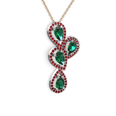 Yeşil kuvars ve garnet 925 ayar gümüş kolye (40 cm rose altın rolo zincir)
