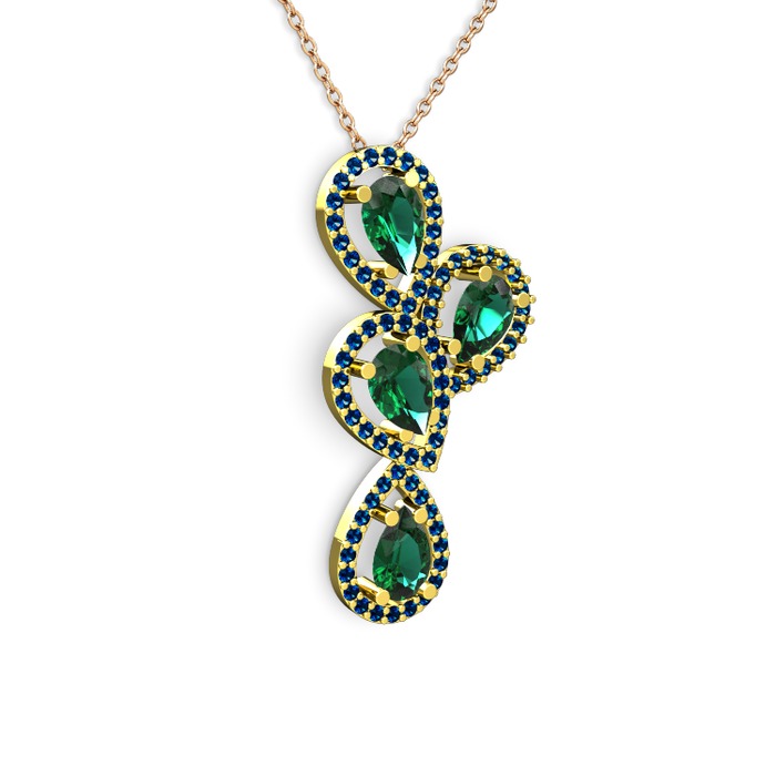 Yeşil kuvars ve lab safir 18 ayar altın kolye (40 cm rose altın rolo zincir)