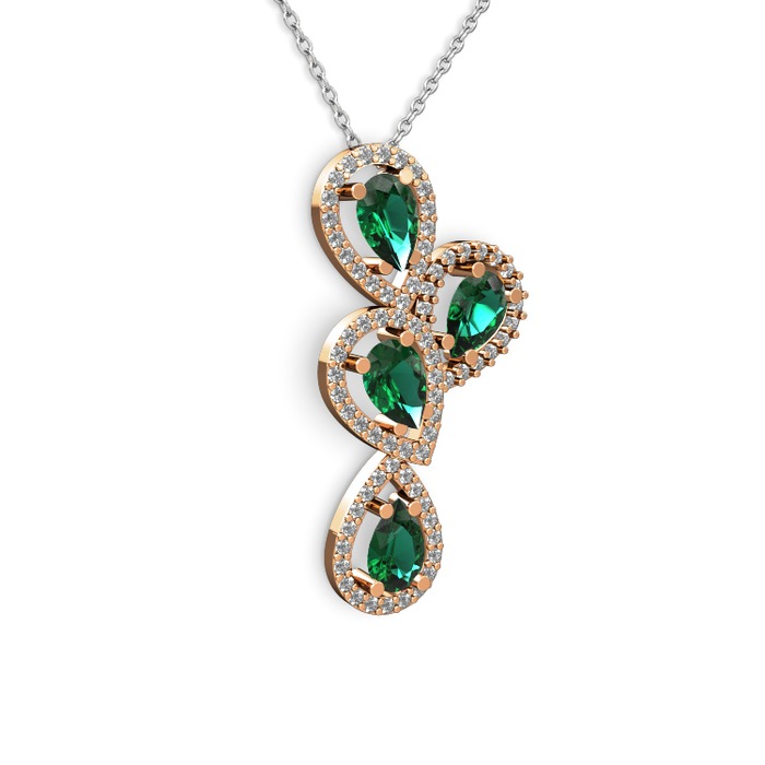 Yeşil kuvars ve pırlanta 925 ayar rose altın kaplama gümüş kolye (0.704 karat, 40 cm beyaz altın rolo zincir)