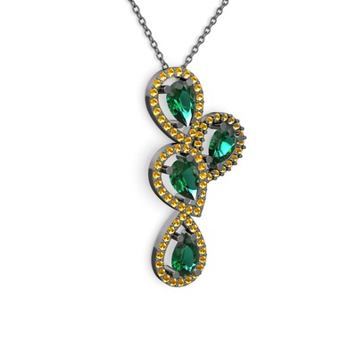 Yeşil kuvars ve sitrin 925 ayar siyah rodyum kaplama gümüş kolye (40 cm gümüş rolo zincir)