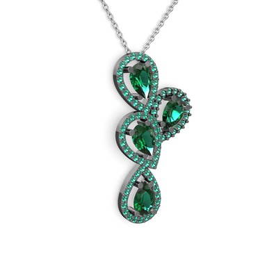 Yeşil kuvars 925 ayar siyah rodyum kaplama gümüş kolye (40 cm beyaz altın rolo zincir)