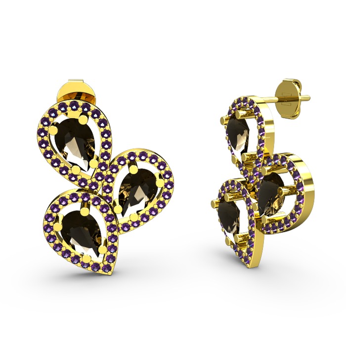 Ametist ve dumanlı kuvars 8 ayar altın küpe