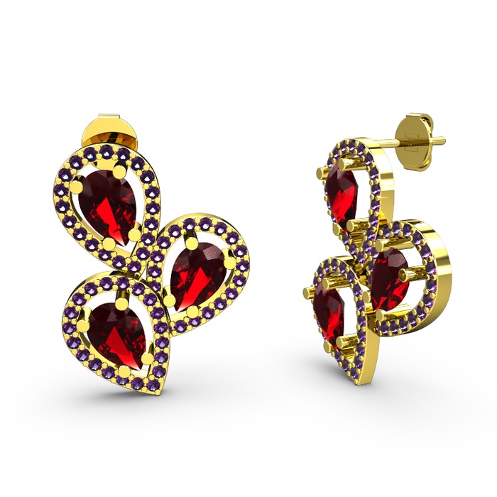 Ametist ve garnet 925 ayar altın kaplama gümüş küpe