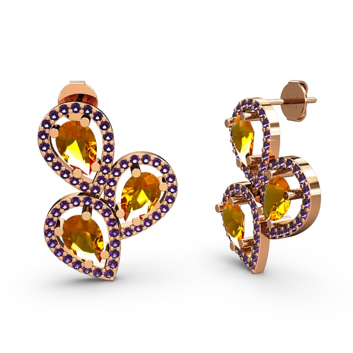 Ametist ve sitrin 925 ayar rose altın kaplama gümüş küpe