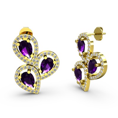 Beyaz zirkon ve ametist 14 ayar altın küpe