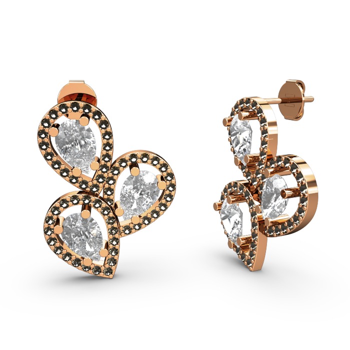 Dumanlı kuvars ve beyaz zirkon 8 ayar rose altın küpe