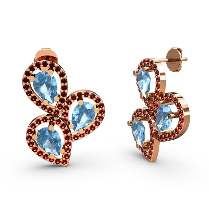 Garnet ve akuamarin 8 ayar rose altın küpe