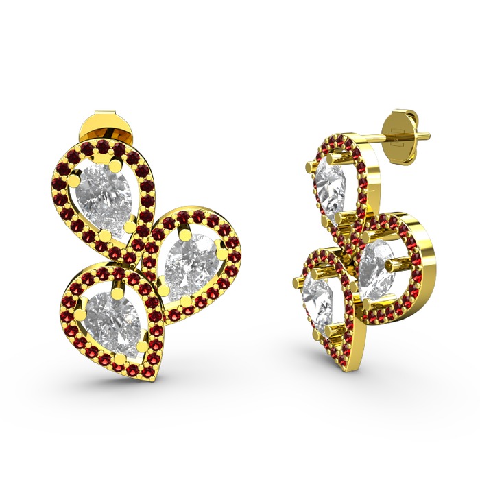 Garnet ve beyaz zirkon 18 ayar altın küpe