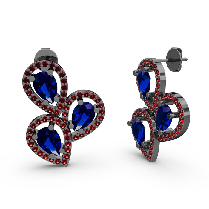 Garnet ve lab safir 925 ayar siyah rodyum kaplama gümüş küpe