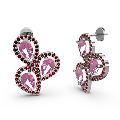 Garnet ve pembe kuvars 925 ayar gümüş küpe