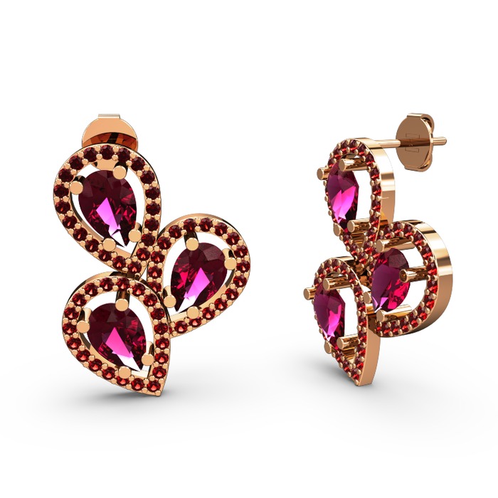 Garnet ve rodolit garnet 14 ayar rose altın küpe