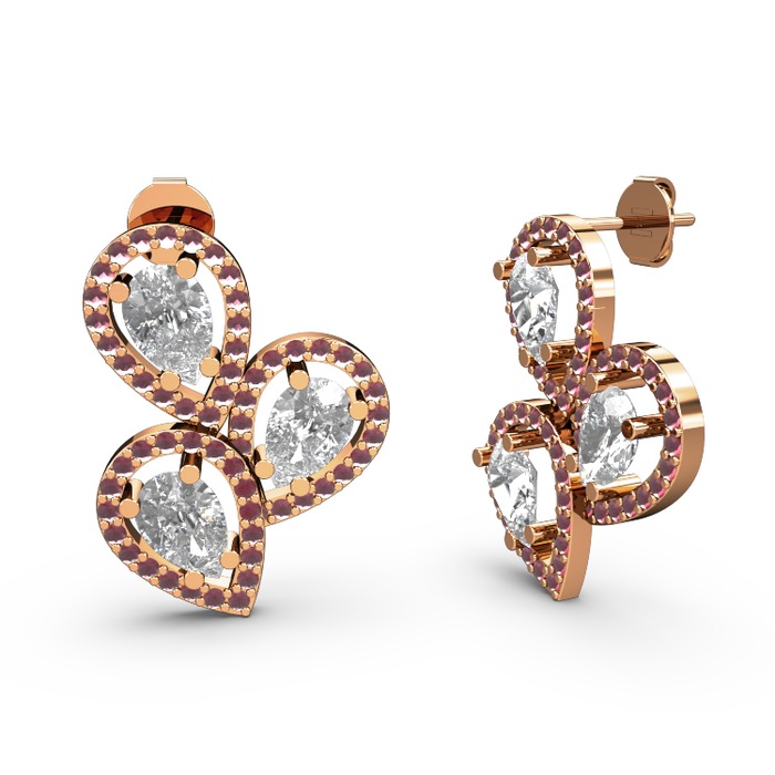 Kök yakut ve beyaz zirkon 14 ayar rose altın küpe