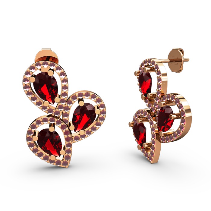 Kök yakut ve garnet 925 ayar rose altın kaplama gümüş küpe