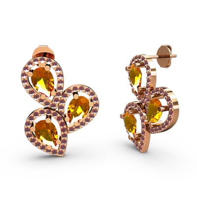 Kök yakut ve sitrin 8 ayar rose altın küpe