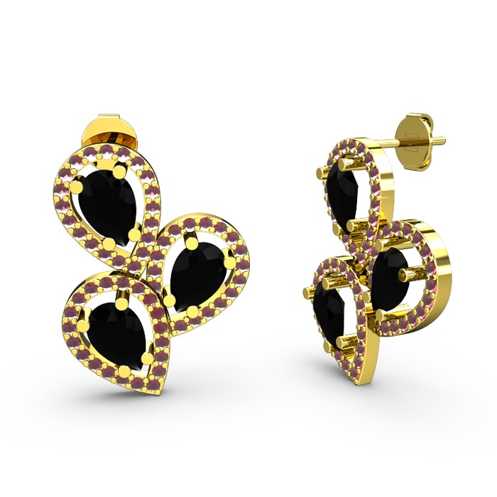 Kök yakut ve siyah zirkon 8 ayar altın küpe