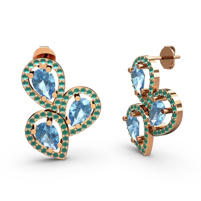 Kök zümrüt ve akuamarin 8 ayar rose altın küpe