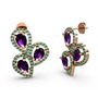 Kök zümrüt ve ametist 18 ayar rose altın küpe