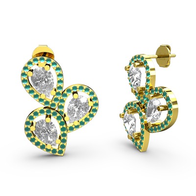Kök zümrüt ve beyaz zirkon 14 ayar altın küpe