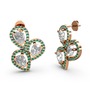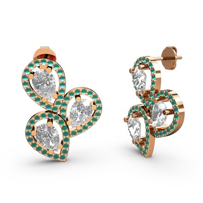 Kök zümrüt ve beyaz zirkon 14 ayar rose altın küpe