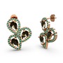 Kök zümrüt ve dumanlı kuvars 18 ayar rose altın küpe