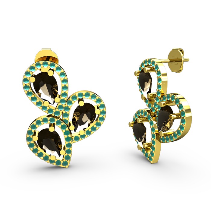 Kök zümrüt ve dumanlı kuvars 925 ayar altın kaplama gümüş küpe