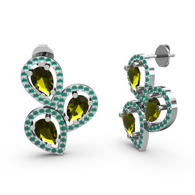 Kök zümrüt ve peridot 18 ayar beyaz altın küpe