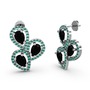 Kök zümrüt ve siyah zirkon 14 ayar beyaz altın küpe