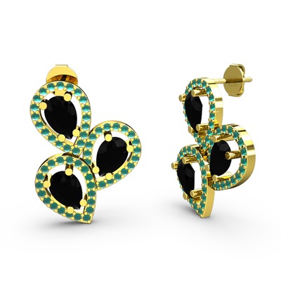 Kök zümrüt ve siyah zirkon 925 ayar altın kaplama gümüş küpe
