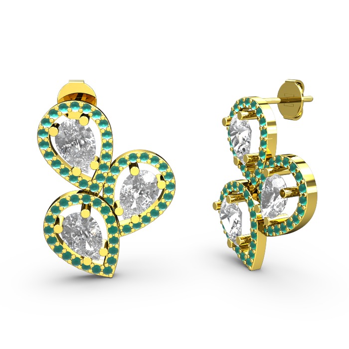 Kök zümrüt ve swarovski 8 ayar altın küpe