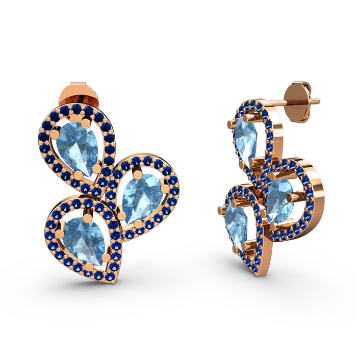 Lab safir ve akuamarin 18 ayar rose altın küpe