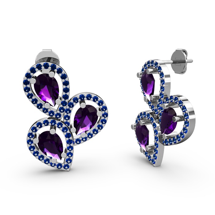 Lab safir ve ametist 8 ayar beyaz altın küpe