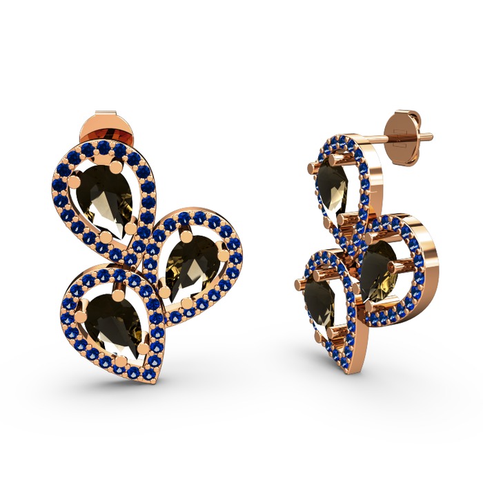 Lab safir ve dumanlı kuvars 8 ayar rose altın küpe