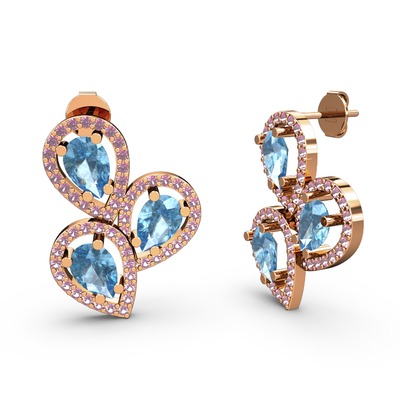 Pembe kuvars ve akuamarin 8 ayar rose altın küpe