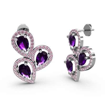 Pembe kuvars ve ametist 925 ayar gümüş küpe