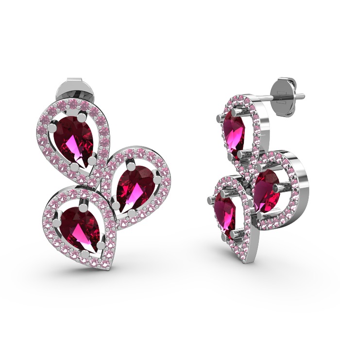 Pembe kuvars ve rodolit garnet 925 ayar gümüş küpe