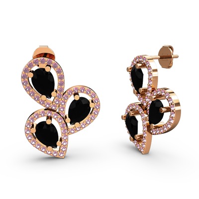 Pembe kuvars ve siyah zirkon 925 ayar rose altın kaplama gümüş küpe