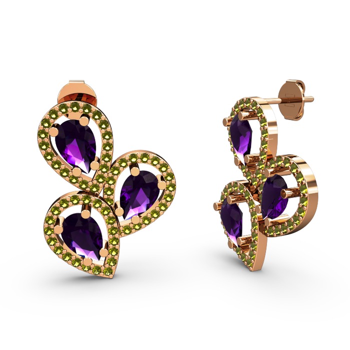 Peridot ve ametist 14 ayar rose altın küpe
