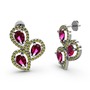 Peridot ve rodolit garnet 8 ayar beyaz altın küpe