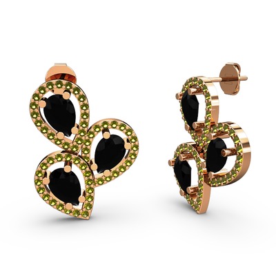 Peridot ve siyah zirkon 14 ayar rose altın küpe