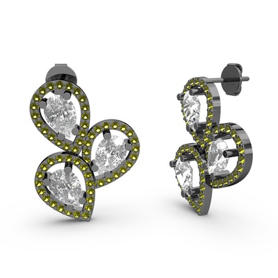 Peridot ve swarovski 925 ayar siyah rodyum kaplama gümüş küpe