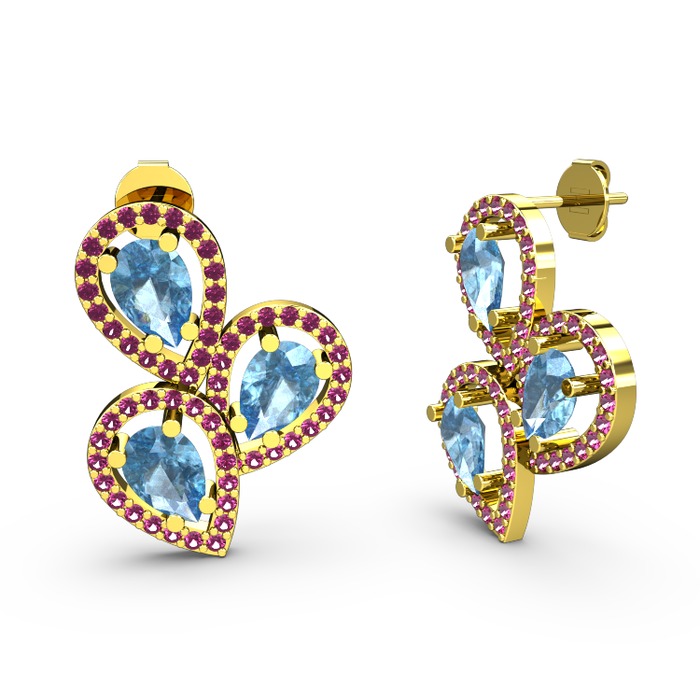 Rodolit garnet ve akuamarin 18 ayar altın küpe