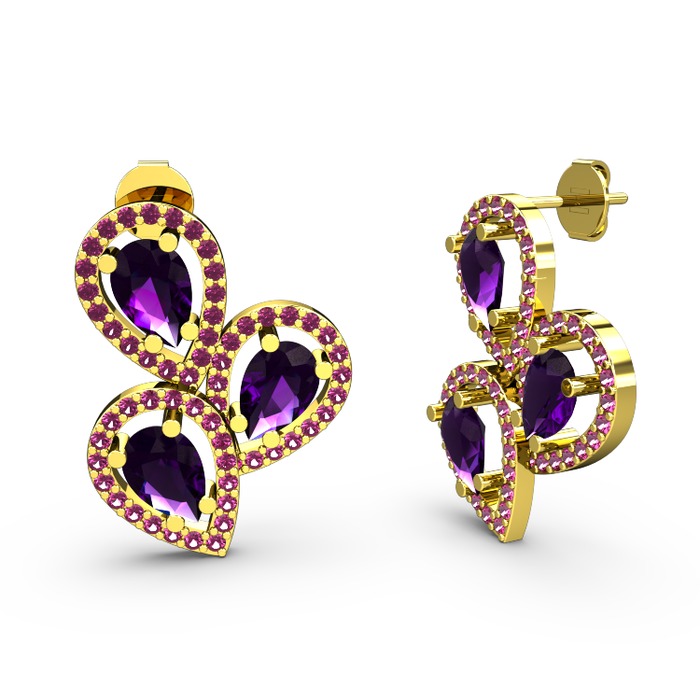 Rodolit garnet ve ametist 14 ayar altın küpe