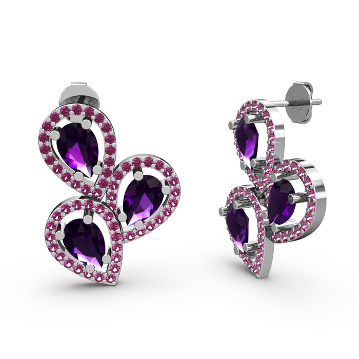 Rodolit garnet ve ametist 8 ayar beyaz altın küpe