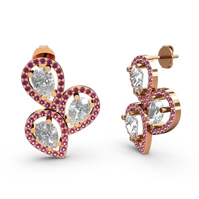 Rodolit garnet ve beyaz zirkon 18 ayar rose altın küpe