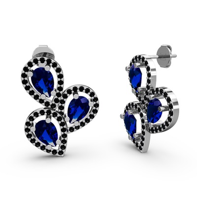 Siyah zirkon ve lab safir 14 ayar beyaz altın küpe