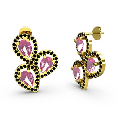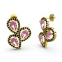 Siyah zirkon ve pembe kuvars 18 ayar altın küpe